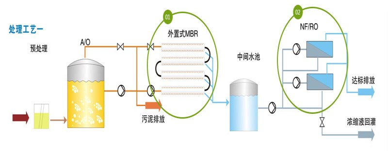傳統(tǒng)生化+外置式MBR+NF/RO工藝: