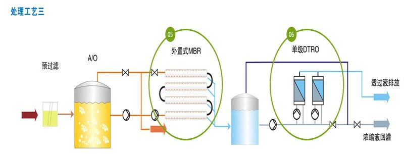 傳統(tǒng)生化+外置式MBR+單級(jí)DTRO工藝: