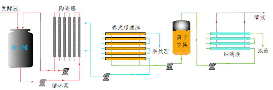 科銳特針對(duì)發(fā)酵液含有生物體、可溶性大分子、電解質(zhì)等多種物質(zhì)的復(fù)雜混合物,其中存在微生物細(xì)胞、膠體、病毒、蛋白質(zhì)、多糖、酶、單糖、有機(jī)酸、無機(jī)離子等,成分非常復(fù)雜的特點(diǎn)不僅可以解決傳統(tǒng)工藝的產(chǎn)物回收率低,損失率高,勞動(dòng)強(qiáng)度大,廢液排放量大等缺點(diǎn)問題,而且提高了產(chǎn)品純度及穩(wěn)定性,降低生產(chǎn)成本,減少廢水排放,實(shí)現(xiàn)發(fā)酵液的高效凈化過濾和最為經(jīng)濟(jì)的濃縮處理.