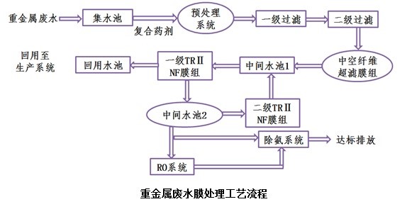 廢水中的重金屬是各種常用方法不能分解破壞的,而只能轉(zhuǎn)移它們的存在位置和轉(zhuǎn)變它們的物理和化學(xué)形態(tài)。例如,經(jīng)化學(xué)沉淀處理后,廢水中的重金屬從溶解的離子狀態(tài)轉(zhuǎn)變成難溶性化合物而沉淀下來,從水中轉(zhuǎn)移到污泥中;經(jīng)離子交換處理后,廢水中的金屬離子轉(zhuǎn)移到離子交換樹脂上;經(jīng)再生后又從離子交換樹脂上轉(zhuǎn)移到再生廢液中??傊?,重金屬廢水經(jīng)處理后形成兩種產(chǎn)物,一是基本上脫除了重金屬的處理水,一是重金屬的濃縮產(chǎn)物。重金屬濃度低于排放標(biāo)準(zhǔn)的處理水可以排放;如果符合生產(chǎn)工藝用水要求,最好回用。